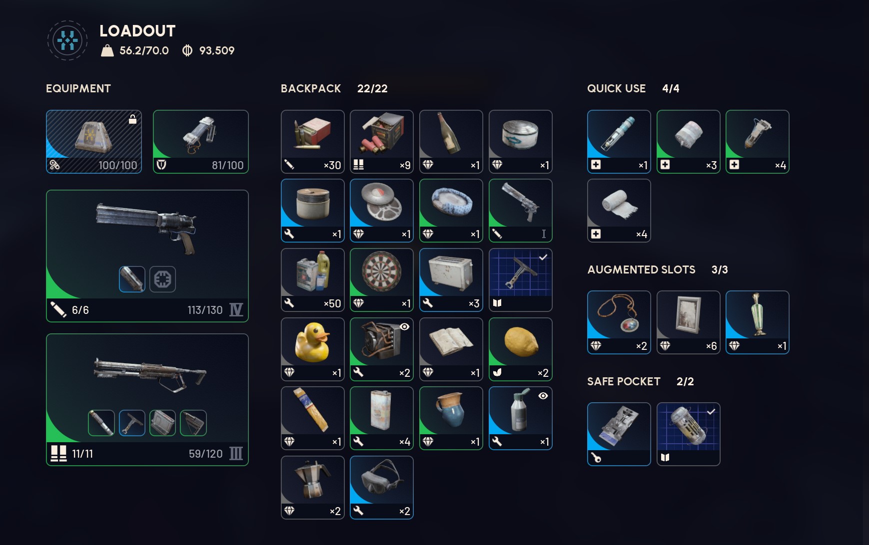 Looting Mk.2 augment is essential for increasing carry weight and adding trinket slots