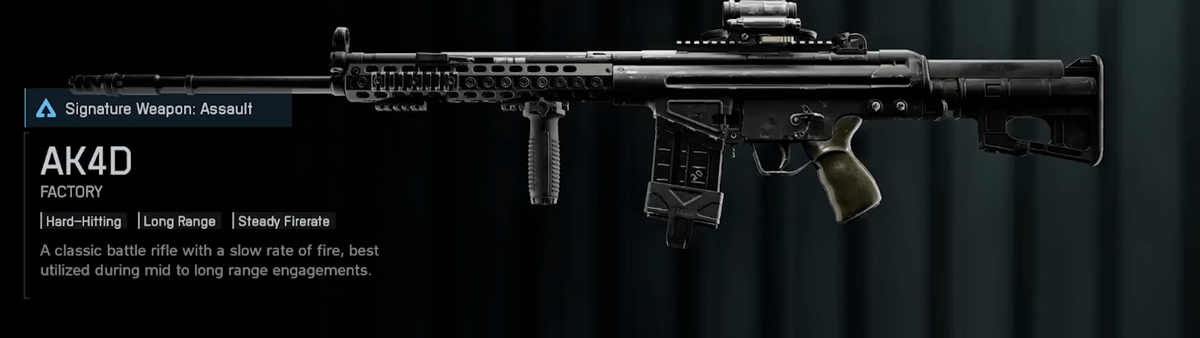 The AK4D is a battle rifle AR hybrid built for precision. It hits for 33 points per shot with excellent recoil control, allowing you to target enemies at mid to long range. The tradeoff is a slow 514 RPM and a 20-round mag, so smart positioning and trigger discipline are mandatory. Punishing up close, but in steady hands, it locks down lanes and wins distance duels.