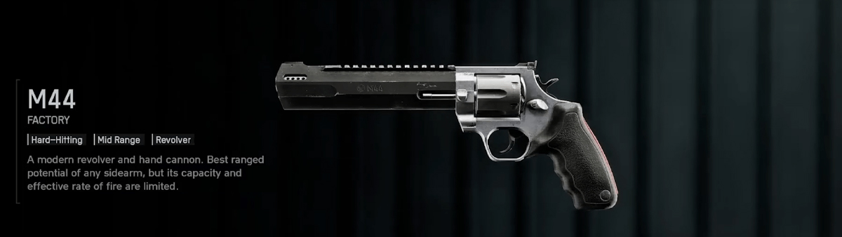 Hard-hitting revolver at 66 per shot with excellent precision. The 6-round cylinder and ~163 RPM require confidence and clean aim. Devastating when you connect, punishing when you don’t. A-tier burst lethality, less flexible than P18 or ES 5.7.
