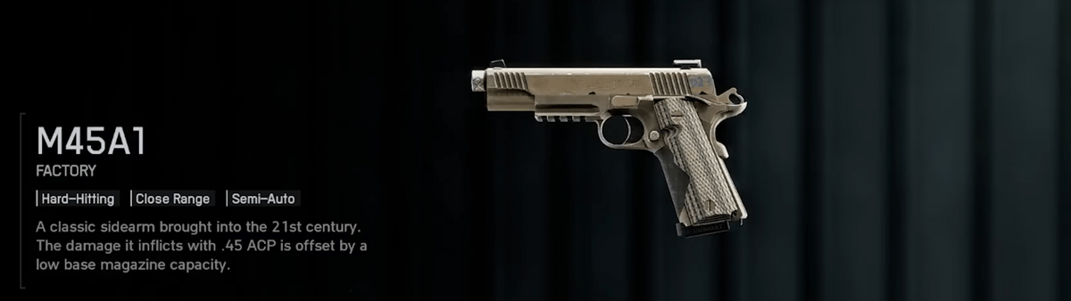 .45 ACP sidearm that hits hard and stays controllable. Slower fire rate than 9mm pistols, but strong three-shot potential up close and reliable recoil recovery make it a trustworthy backup when your primary runs dry.