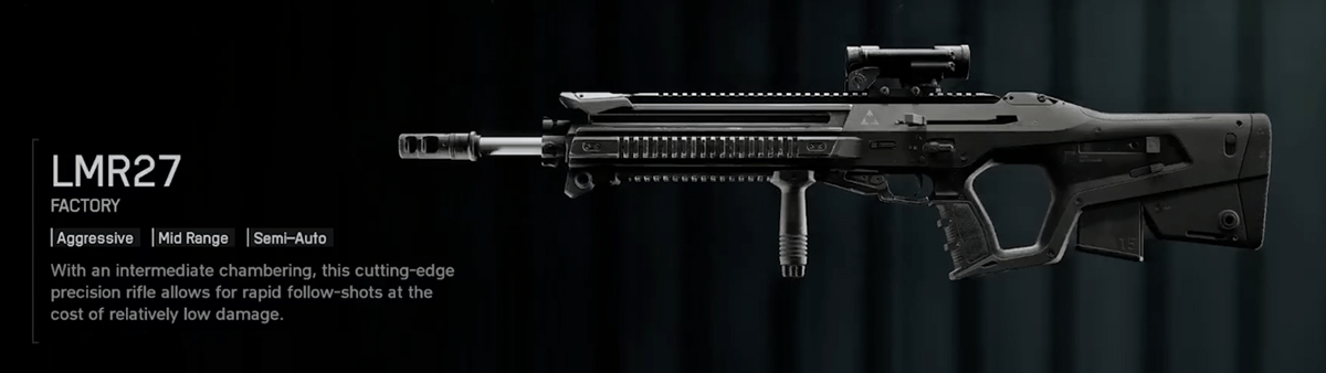 A tempo-driven DMR built for rhythm shooting. Faster follow-ups than heavier DMRs, crisp tap-fire at medium range, and enough punch to deter peeks. It loses to true snipers at extreme distances, but rewards timing and clean bursts.