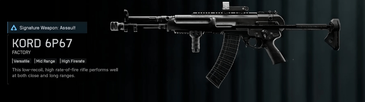The KORD 6P67 is your go-to for nonstop pressure. Firing at 900 RPM with a 40-round mag, it chews through lanes and keeps enemies pinned. Damage per shot is low (20), but excellent recoil control (65) and solid precision (39) keep it lethal from close to mid range. It won’t outburst the NVO-228E or hit as hard as the AK4D, yet it’s a dependable A-tier pick for consistent suppression.