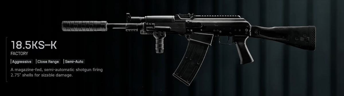 Semi-auto shotgun that trades a touch of raw damage for rapid follow-ups. The 7-round tube can feel tight, yet its smooth handling under pressure makes it an A-tier choice for aggressive breaches and point holds.