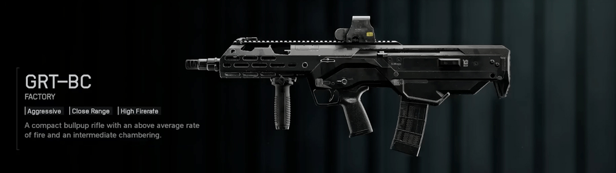 An SMG-leaning carbine with 830 RPM and snappy mobility (50), the GRT-BC shreds in tight spaces and quick flanks. Past mid range, its mediocre control (54) and low precision (33) show, leading to bloom and dropped duels. Fun for aggressive entries, but AK-205 or QBZ-192 are steadier picks. Solid B-Tier.