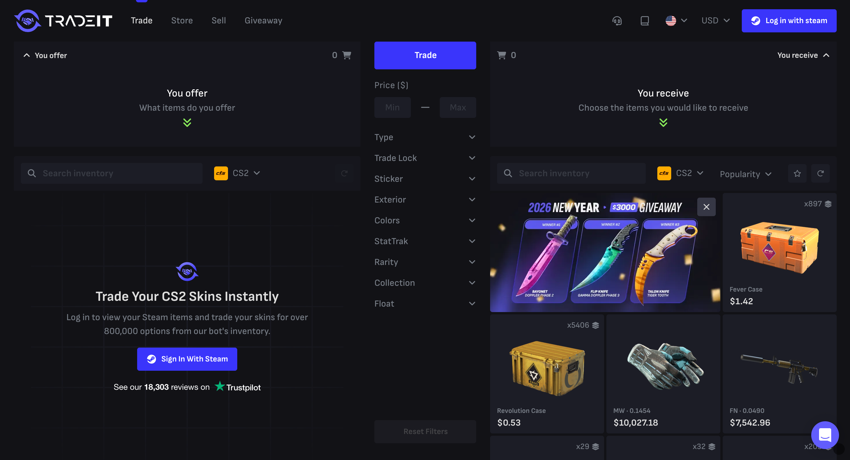 Tradeit is built around fast swaps and easy browsing. For many users, it feels less like a marketplace and more like a tool to trade without thinking too much. That convenience is the main reason it ranks above the lower options.