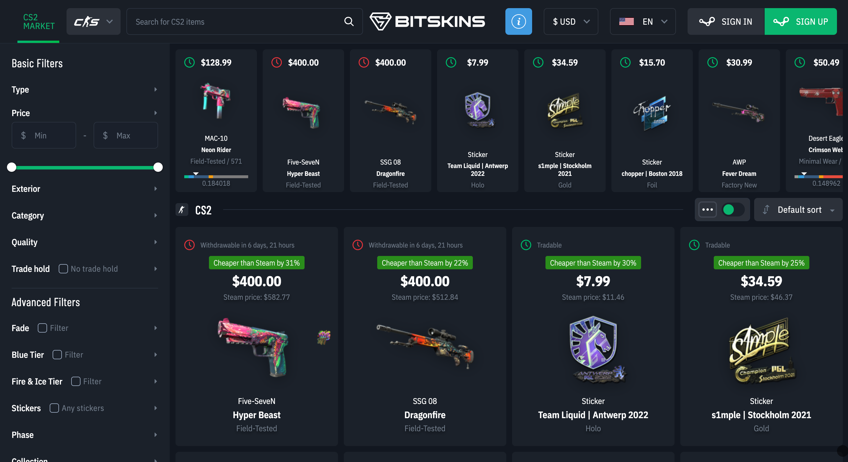 BitSkins takes the second spot on our list of where to buy CS2 skins. Many traders recognize the name and know what to expect. The platform focuses on straightforward buying and selling, without trying to reinvent the process. Prices are usually competitive, and the marketplace feels stable once you get used to it.