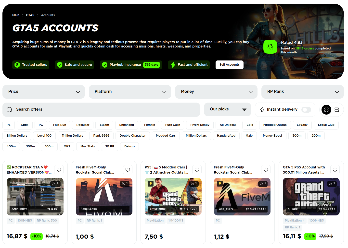 PlayHub is the safest site to buy GTA 5 Modded Accounts if you value security and professional service.