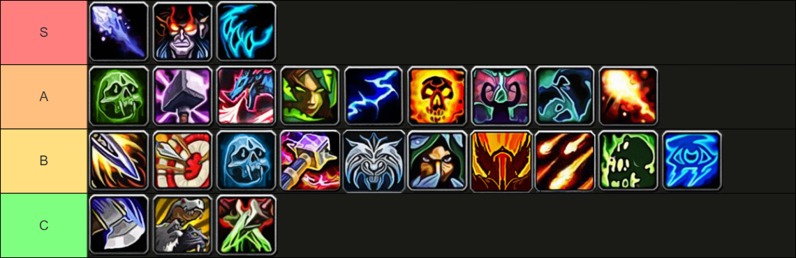 A-Tier specs are very strong raid choices that top the meters, but fall slightly behind the S-Tier specs.